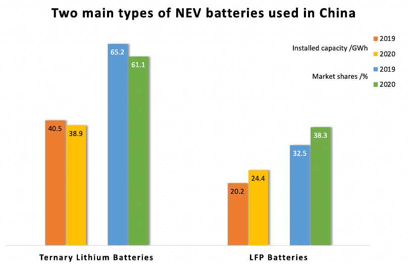 On the other hand, the LFP battery also has its own significant advantages over NCM/NCA batteries. The rising installed capacity of LFP batteries in 2020 mainly attributes to its low costs, as its raw materials do not consist of precious metals. NCM/NCA batteries use nickel and cobalt, which are largely imported due to the shortage of domestic resources. Considering that Chinese regulators are phasing-out NEV subsidy policies, switching to LFP batteries can help both battery makers and NEV producers reduce their manufacturing costs.