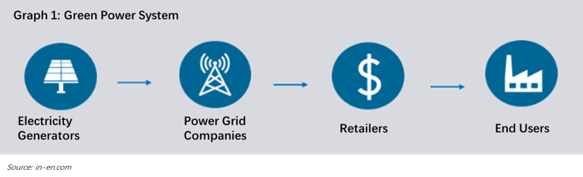 The general trading process starts with buyers signing Power Purchase Agreements (PPA) in the green power market with suppliers. Then, the agreed amount of green energy will be allocated to the buyers. According to the new rules published by Beijing Power Exchange Centre, China’s trading system involves two types of transactions: in-province trading and cross-province trading. In-province end users and power retailers can purchase green power directly from a power generation firm within the province, while out-of-province buyers have to bid for renewable products from a distributor recognized at the province level.