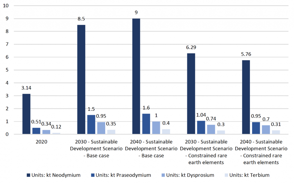 Graph: Sustainable development scenarios for the increasing demand of rare earth elements used in the manufacture of wind turbines (12).