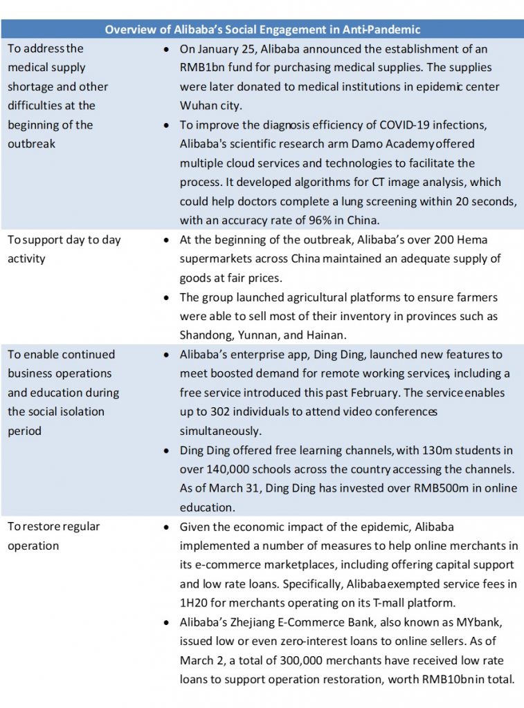 Overview of Alibaba’s social responsibility performance during the pandemic outbreak